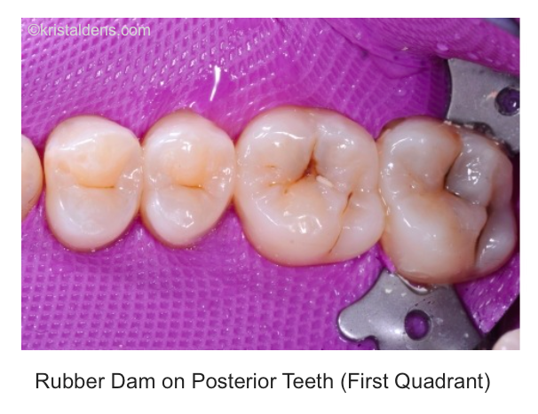 – The dam, which is usually brightly coloured (pink), may alter the apparent color of the tooth, which can lead to incorrect choice of tooth shade during restoration. For this reason, shades are normally chosen before the dam is applied.
