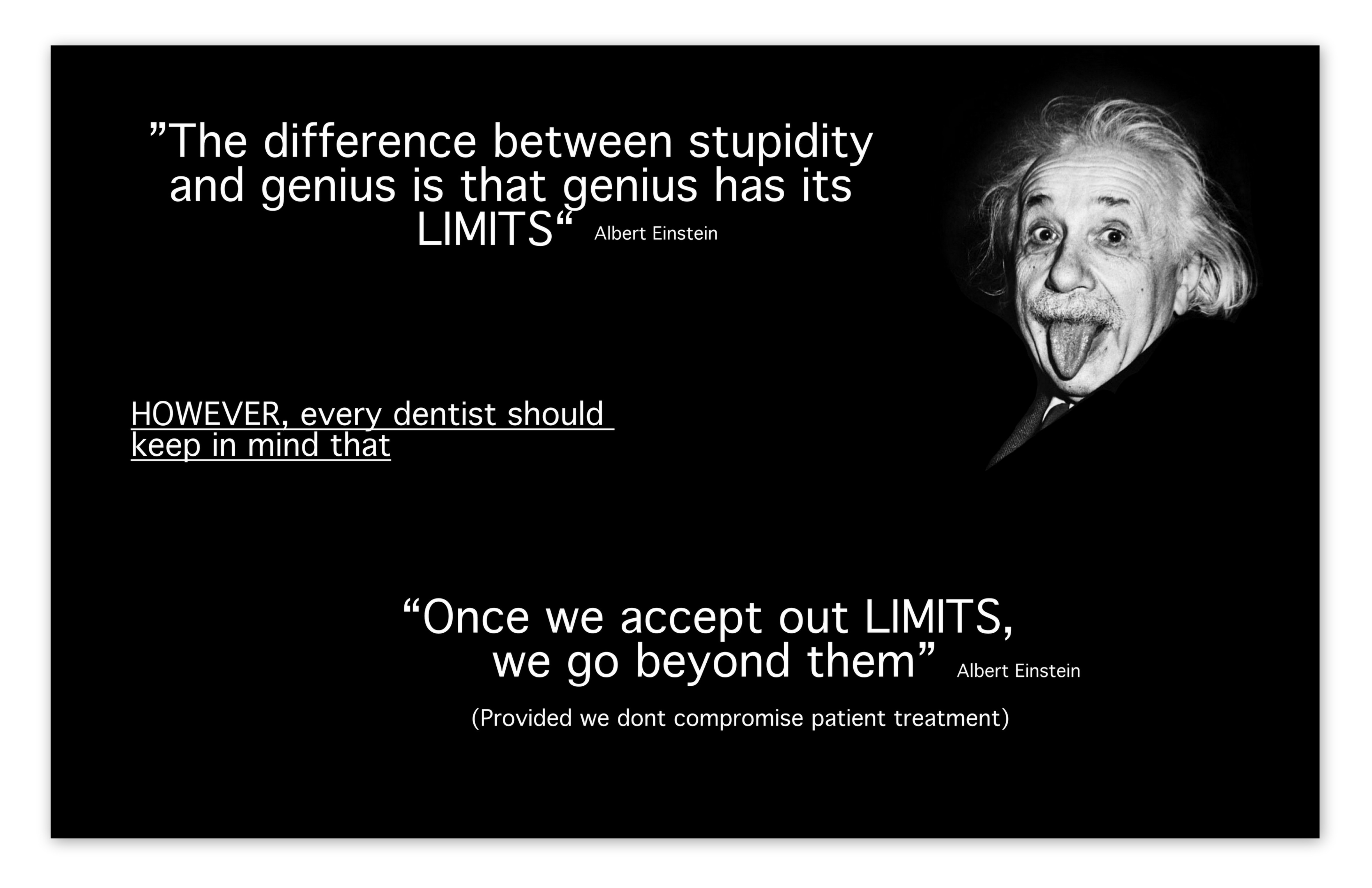 Needless to say, throughout our dental journey, dentists will encounter numerous situations where they will have to know their limits. Recognition of limitations will be one of the most important lessons in our personal and work development.