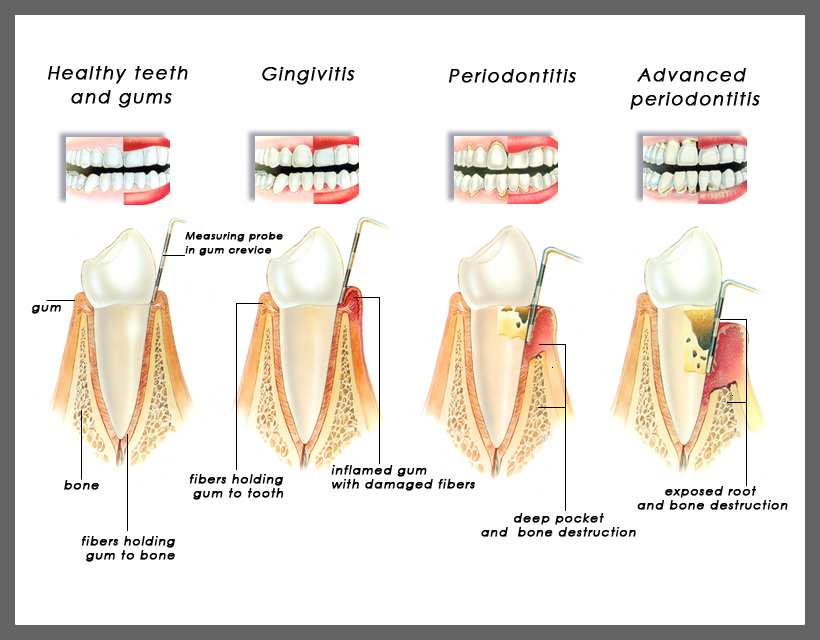 – In this final stage of gum disease, periodontitis progresses and becomes advanced periodontitis.